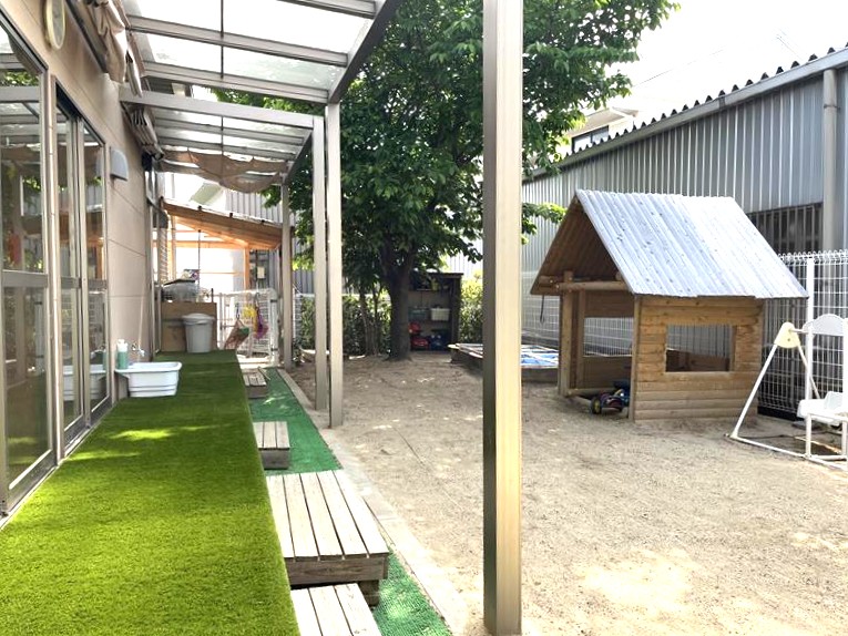 園に隣接した小さな園庭があります。小さな子どもたちも、ほっこりとした空間で安心して遊ぶことができます。