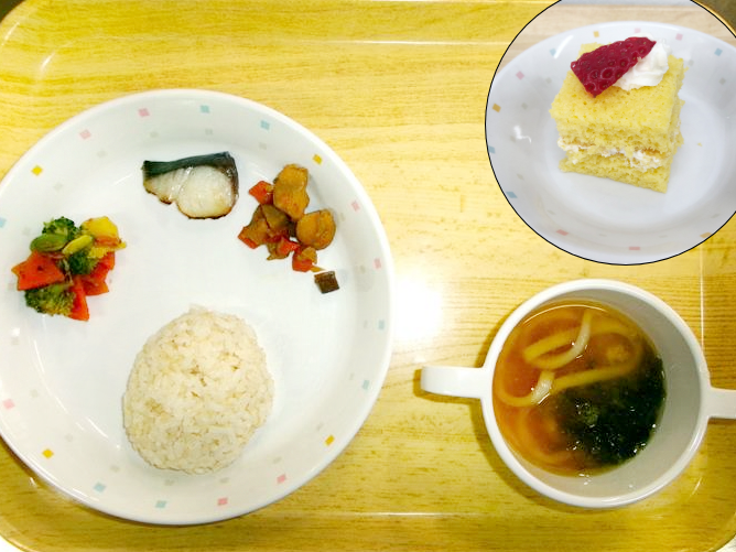 本園よろこびの園の調理室で作っています。衛生管理を徹底し、厳選した食材、調味料で毎日手作りしています。お誕生日会の日にはお誕生日メニューがあります。